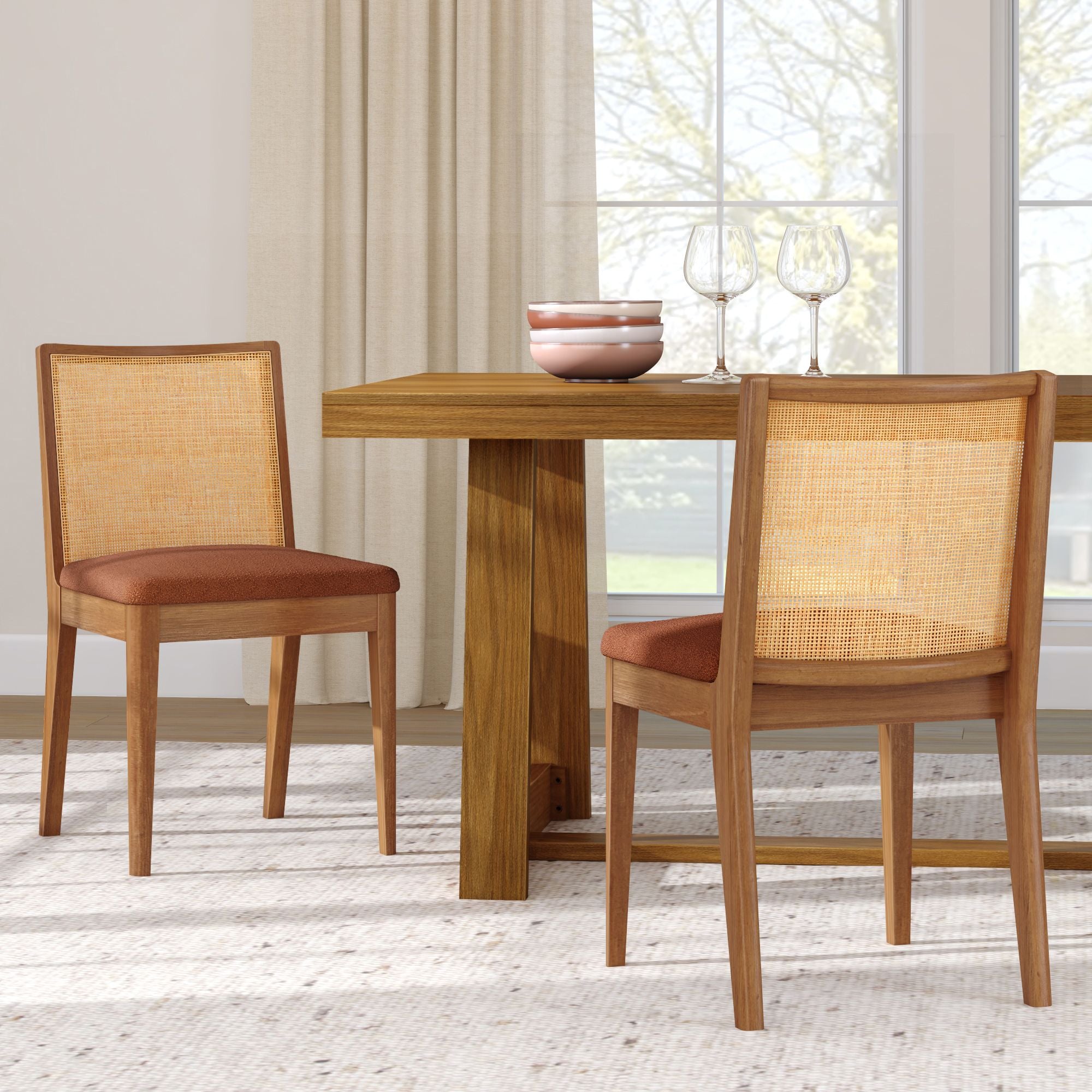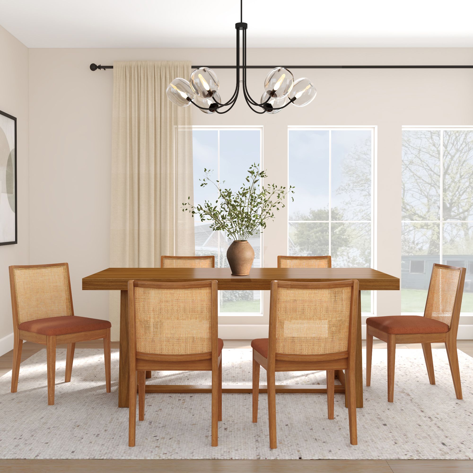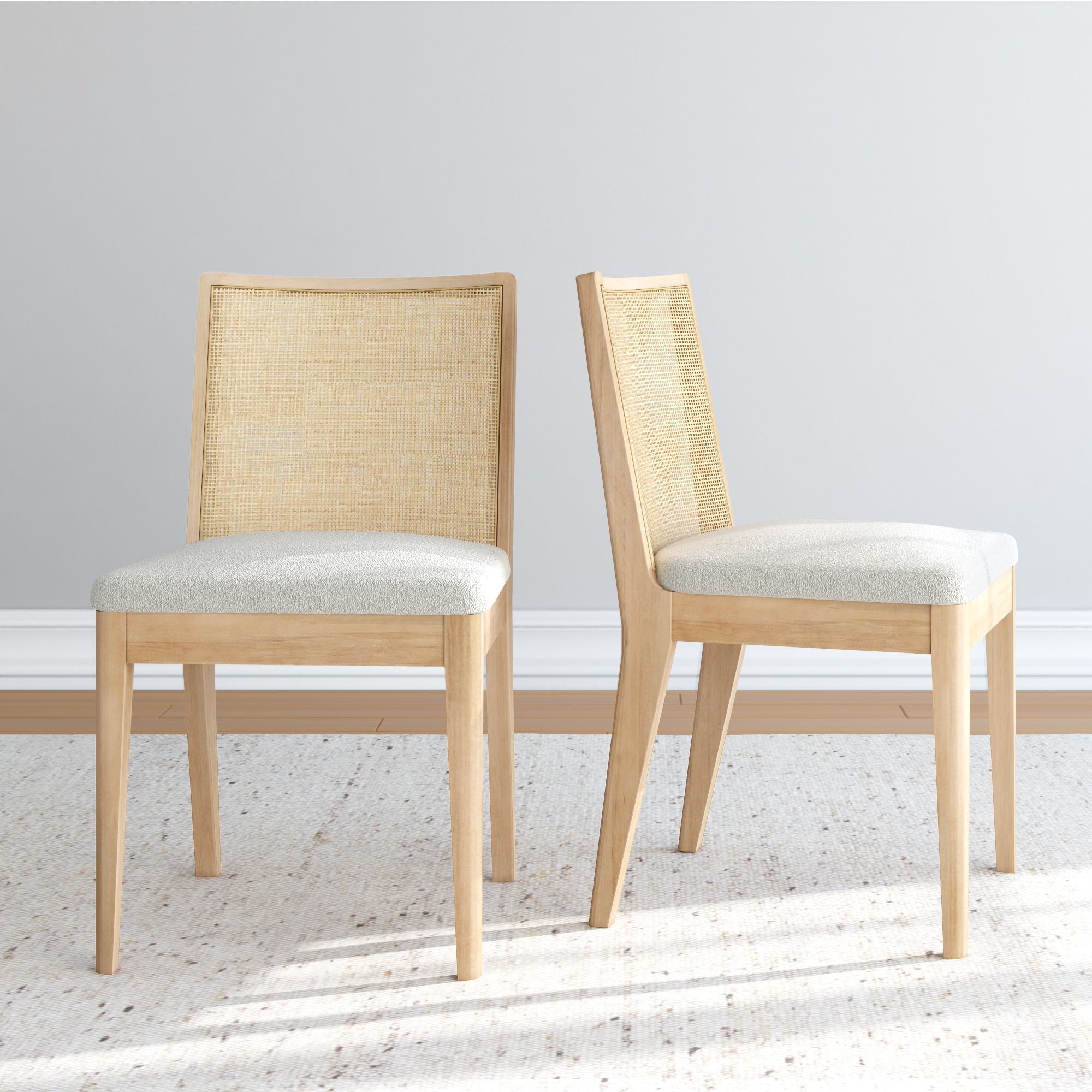 The Elio Dining Chair has a look you’ll love and a seat you won’t want to leave. Built with a sturdy frame made of solid rubberwood and engineered wood, it’s designed to keep up with everyday life (and then some). The rattan backrest brings in that natural, airy texture that instantly makes your space feel more relaxed. Add in the soft bouclé cushion and you’ve got comfort that goes way beyond dinner. Whether your vibe leans mid-century, boho, or coastal, Elio’s clean lines and airy feel make it a standout pick. Available solo or in sets of 2 and 4, this rattan and bouclé dining chair is easy to mix, match, and make your dining space feel your own.
